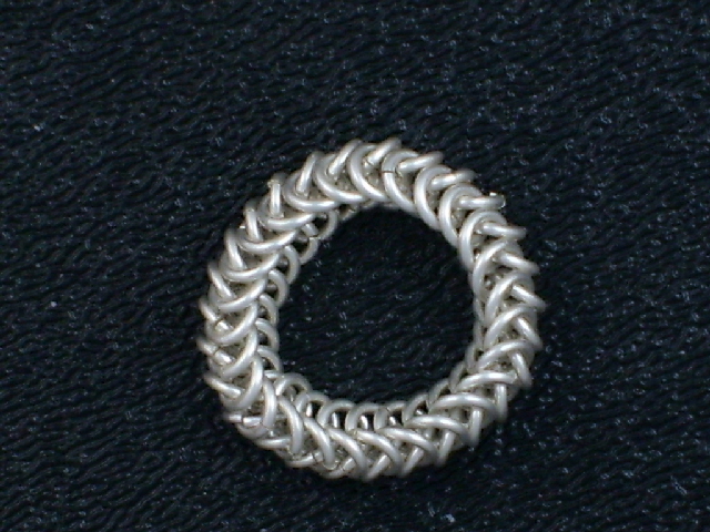 I've posted 3 photos below of a custom sterling ring that I did. One shows the ring in process so you can get a real understanding of the size of the rings - note the safety pin in the background - it's 1 1/2" long. The inside diameter of the rings is 1/8". The other 2 photos show the completed ring from 2 views.