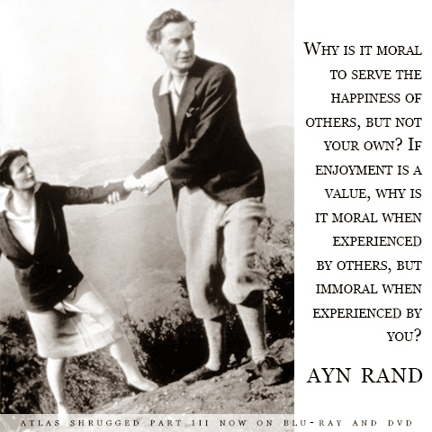 "Why is it moral to serve the happiness of others, but not your own?" - Ayn Rand