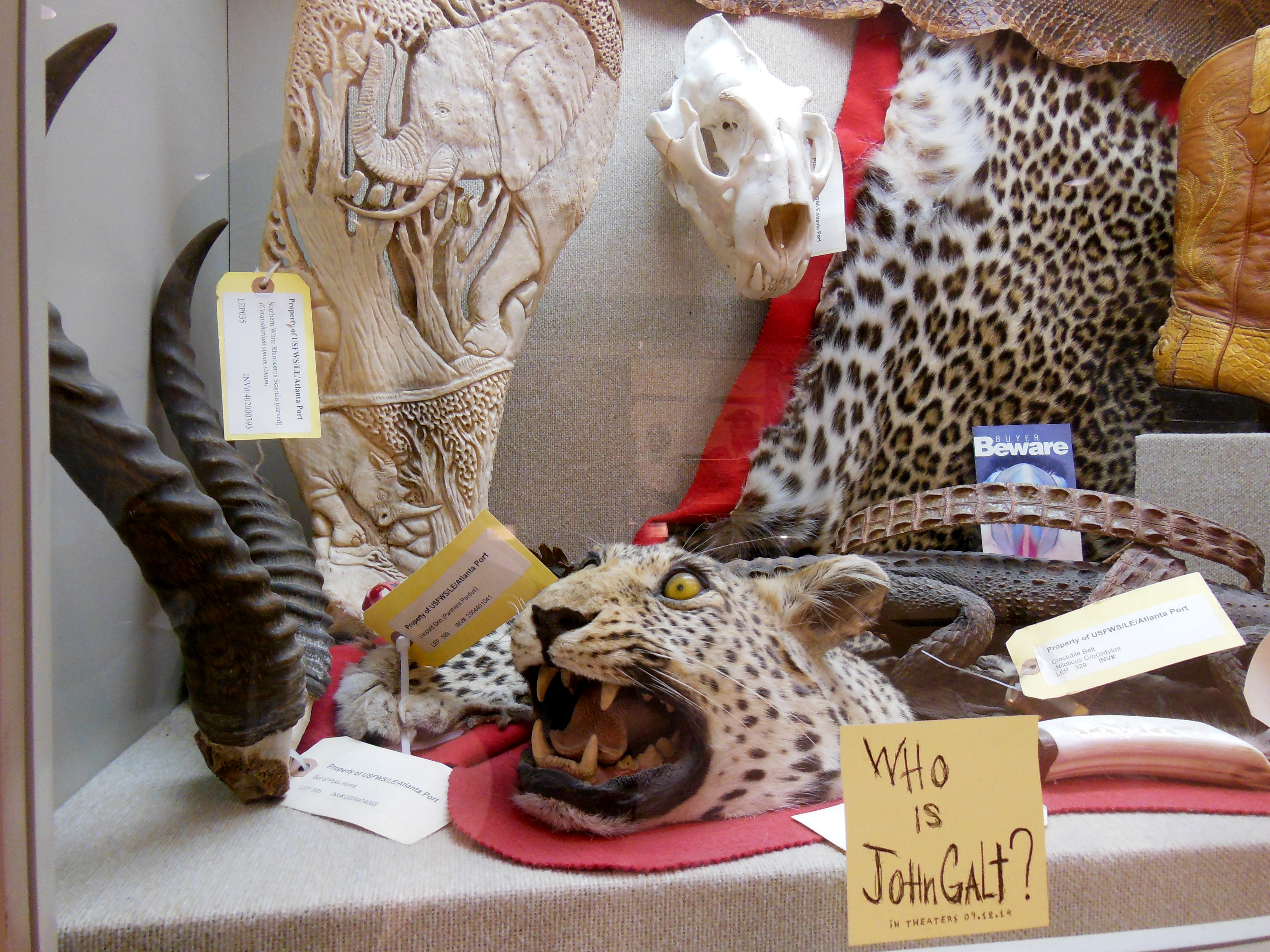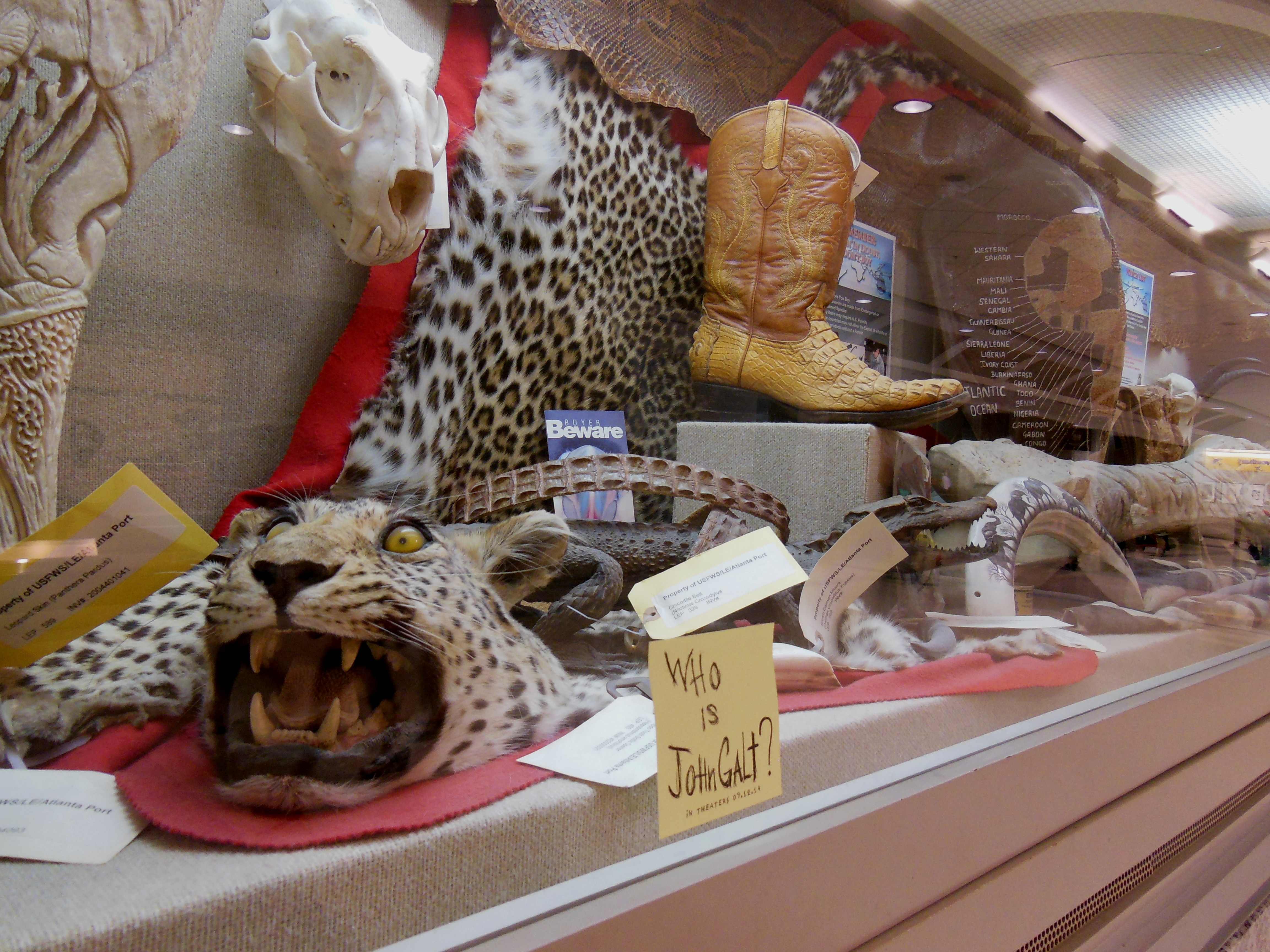 Atlanta Airport - confiscated animal trophies display -presented by the Georgia department of fins, furs and feathers
