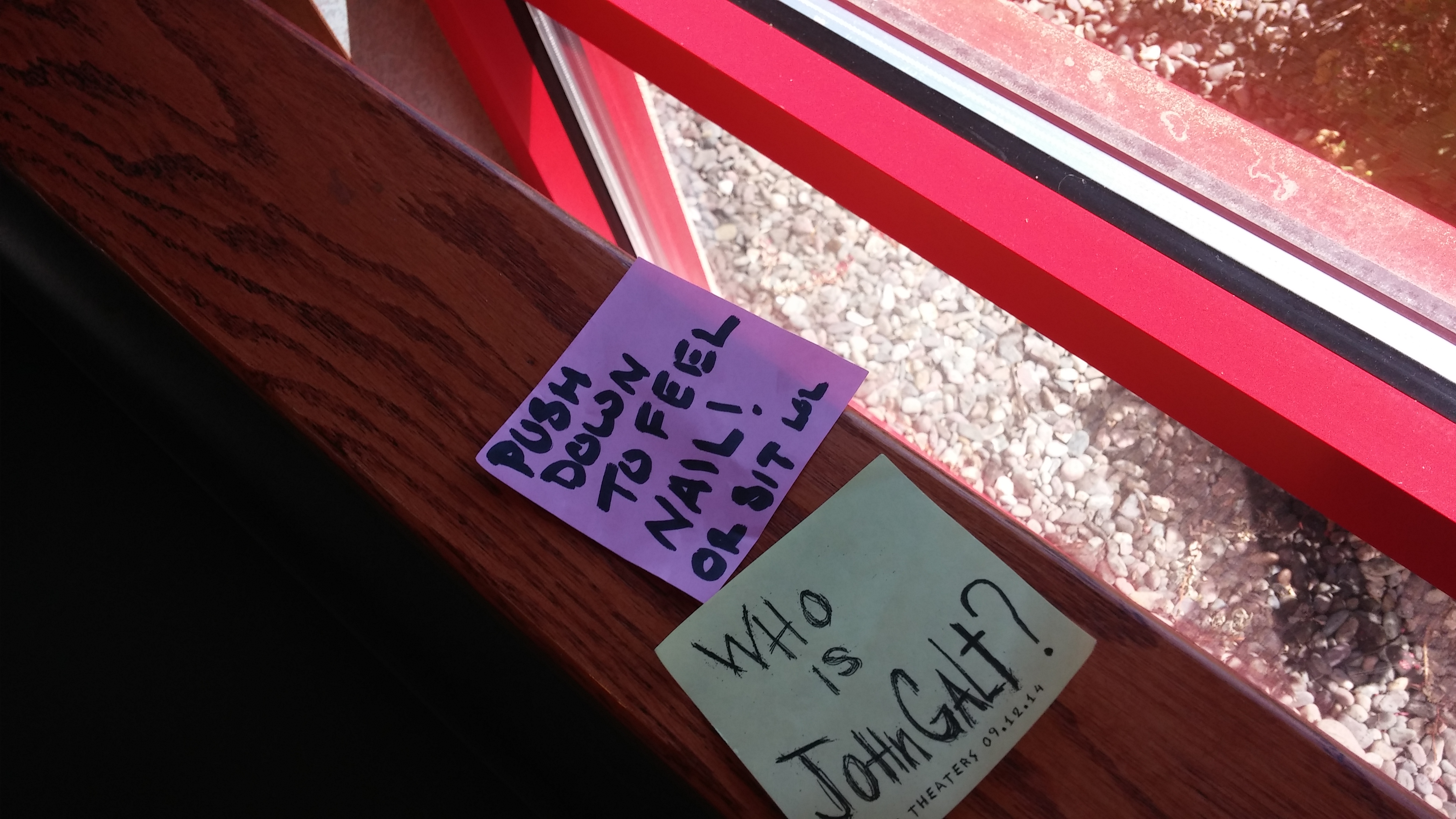 This postit was on the back of the bench at the Arby's I had lunch at today, so I just had to add my own postit to it.