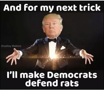 Trump making Dims~oops, I mean Dems~defend rats was the frst to make me smile but the next 'un with the car rats talking about what really fills Baltimore caused me to LOL! The one after that with a cat having a bad hair day had me laughing just as loud. Liked "The party's over."